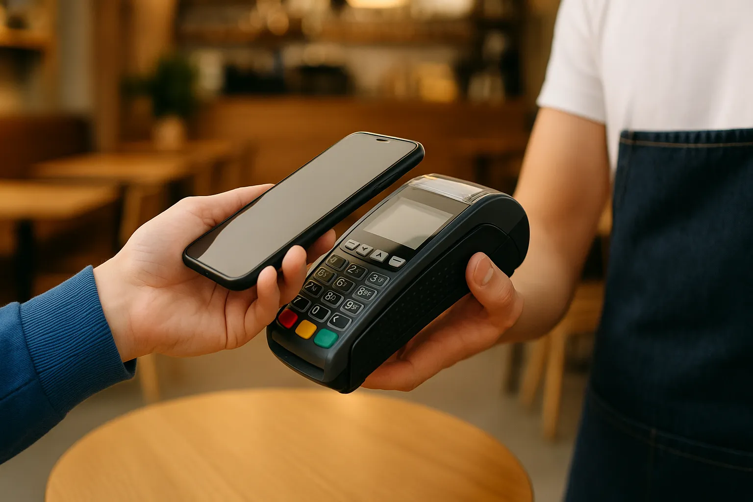 Et billede der illustrerer betaling, med fokus på Dankort og Apple Pay. En betalingsterminal eller en mobiltelefon viser betalingsikoner for Dankort og Apple Pay samt ordet betaling.